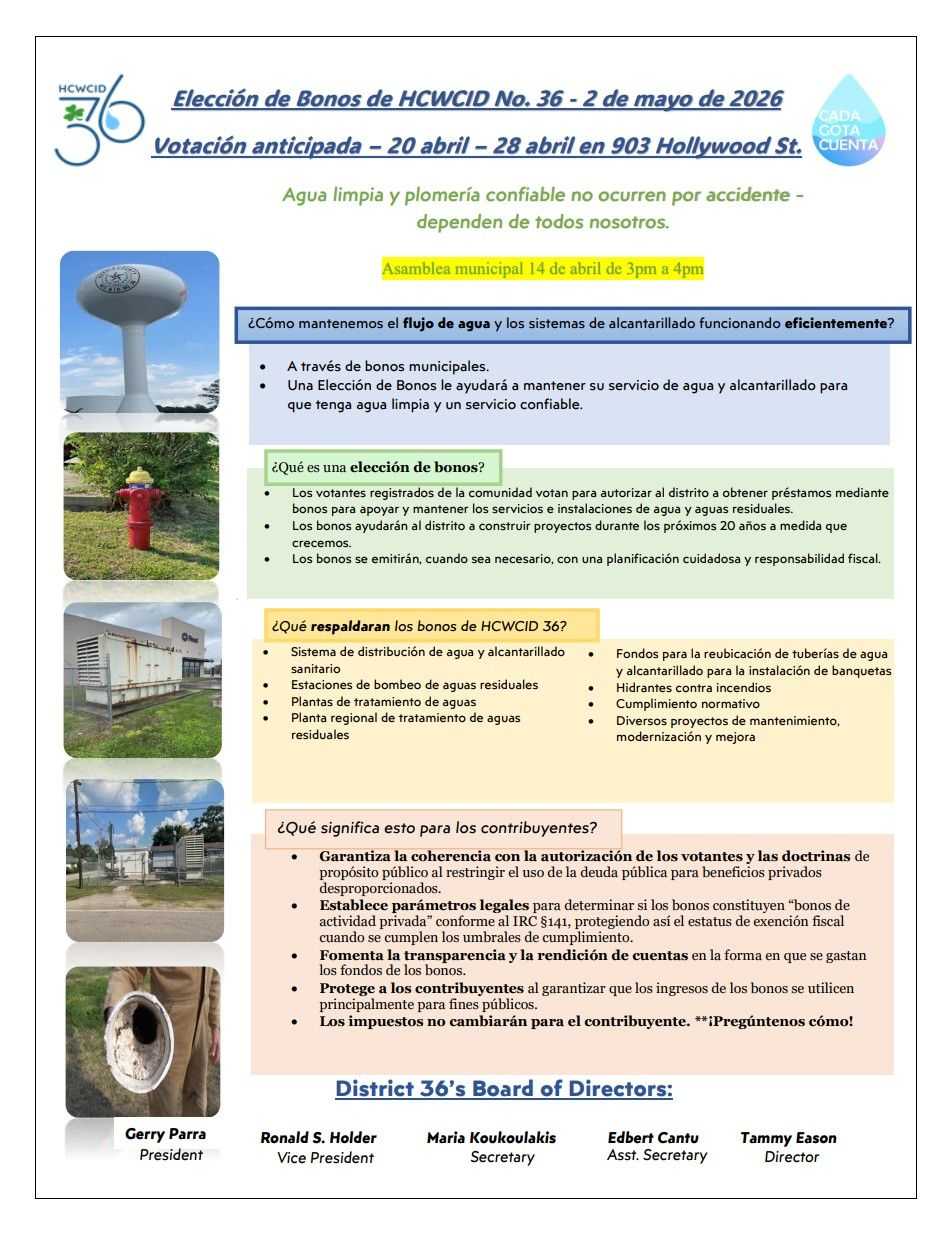 Elección de Bonos de HCWCID No. 36 - 2 de mayo de 2026